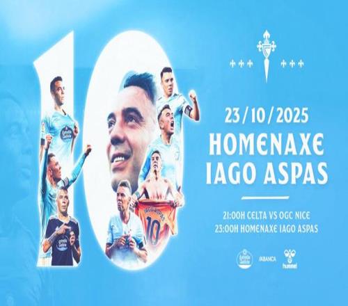 塞尔塔诚邀所有观看周四比赛的球迷参与这场致敬活动,活动将持续到晚上11点20分左右。这将是一个充满掌声、激情和感恩的夜晚。因为没有什么比能够说“我看过伊阿戈·阿斯帕斯的比赛”更令人自豪的了。