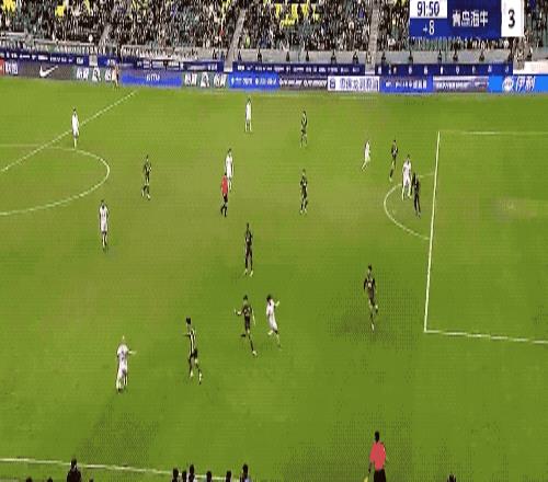 第8分钟,曹永竞再次将球送入禁区,古加巧妙一漏,法比奥的爆射放了高射炮。