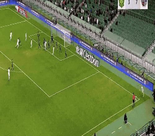 第20分钟,达万的传球直接传统海牛的防线,法比奥抢先伸出一脚,破门得分。