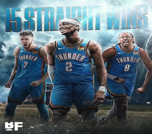 雷霆连续两场有12名球员至少得到5分创造NBA历史纪录