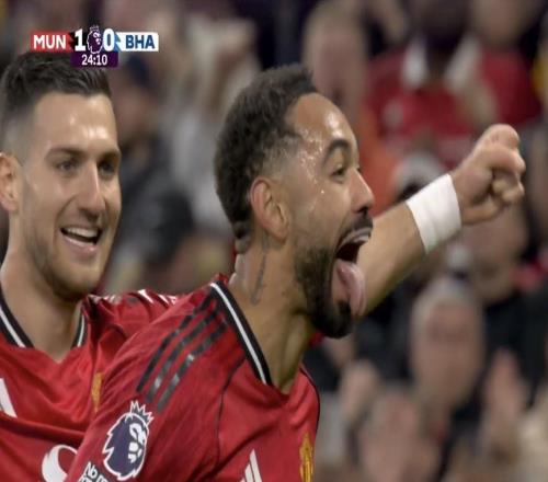 对阵布莱顿破门,马特乌斯库尼亚攻入曼联生涯首球